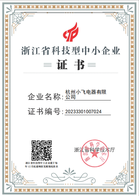 杭州小飞电器有限公司成立于2002年,是一家专业从事智能化电子产品研发、软件开发、生产及销售的创新型企业。是国家高新技术企业和浙江省科技型中小企业。